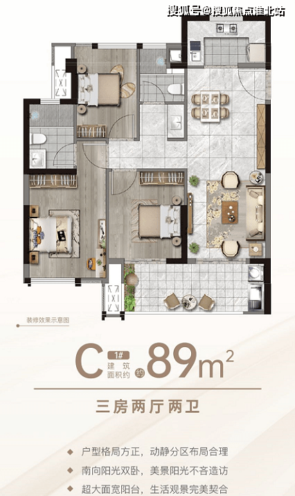 三房两厅两卫|建筑面积约:89㎡