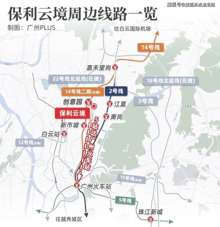 先拿交通来说,地铁14号线二期的创意园站,与项目直线距离仅约600米(建设中,预计2025年开通),5站即达广州火车站,相当于听完一首劲歌金曲,就能换乘5号线和11号线(建设中),通达全城。