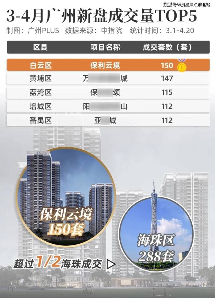 根据中指院数据显示,今年3-4月(截至4.20),保利云境就以150套的成交量,登顶广州楼市成交榜TOP1。
