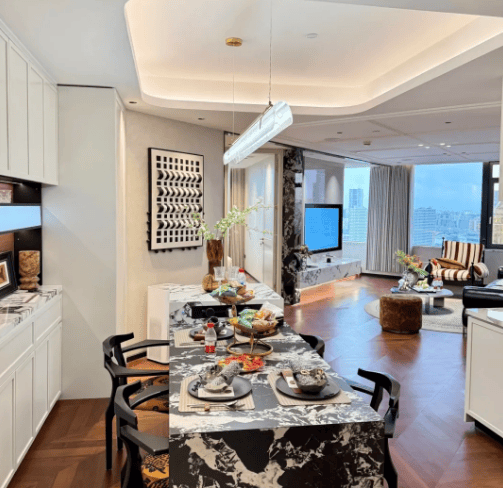 交付标准:精装交付,配备一线品牌家电、进口名贵石材及软装,公区升级茶室、健身房等设施。
