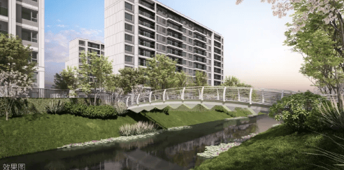 景观设计:以 “一帘幽梦 —— 穿梭古今” 为设计主题,将丝绸的经纬织法植入景观设计中,通过一轴、两环、两心、十花园贯彻整个小区,自然双水系穿园而过,湾流合抱之上的中轴景观,移步易景。