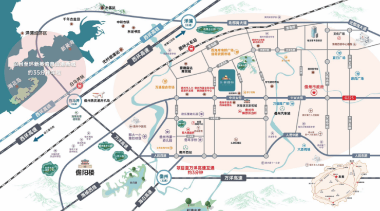 交通:距离万洋高速、儋白高速入口仅约 2 公里,距北部湾大道约 5 公里,距离儋州汽车总站约 2 公里,交通便利。