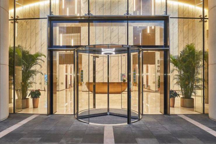 建筑设计:采用现代建筑风格,线条简洁,立面大气典雅,双层 Low-E 超白玻璃幕墙外立面,既符合现代审美,又能有效利用自然采光和节能减排。其 16.8 米挑高精装大堂,彰显大气。