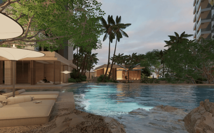 生态景观:紧邻凤凰岭海誓山盟景区,内部打造约 3.2 万㎡“一链九岛” 雨林景观,含雨岸泳池、雨林客厅、林荫游廊;保留原生大树与水系,泛会所设健身房、茶艺图书区、儿童活动区;