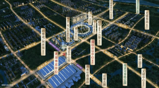 教育配套:直线 3km 范围内有 14 个幼儿园、8 个小学,如无锡市华庄中心小学、无锡市太湖实验小学等,以及 3 个中学,包括无锡市江南新城实验中学、无锡市华庄中学。