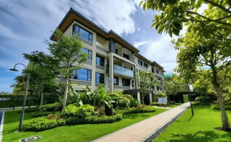 三重景观体系:规划 “一轴三带五园”,以中央水景轴串联林下会客、儿童乐园、康养花园等功能区,社区内种植椰子树、旅人蕉等热带植被,实现 “推窗见绿、出门入园”。