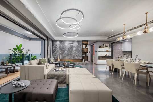 户型设计合理:涵盖建面约103㎡、123㎡、129㎡、143㎡等户型,满足不同需求。如103㎡高层三房两厅两卫,三开间朝南,约6.6米阔景双阳台;129㎡洋房四开间朝南,得房率约85%,空间尺度宽敞。