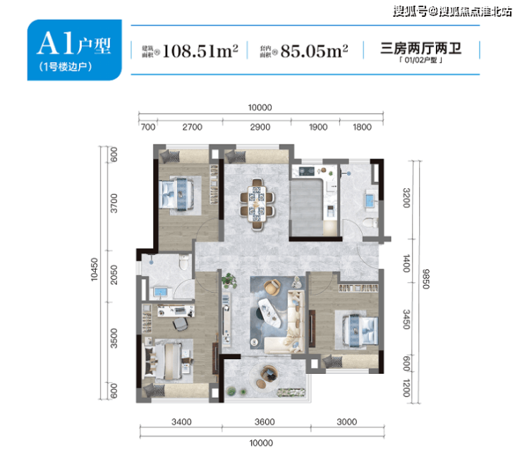 户型面积:主推建面约 104-110㎡的三房两厅两卫户型,空间布局合理,功能齐全,能够满足不同家庭的居住需求。