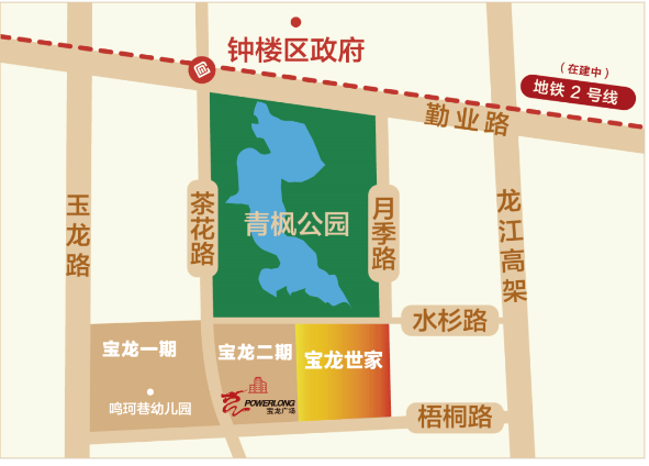 常州宝龙三期项目属于钟楼新城青枫公园板块,自带运营成熟商业——宝龙广场,配套齐全,生活便利;一路之隔即为青枫公园,出门即享鲜氧生活;周边除了多路BRT快速公交外,还有轨道交通2号线在建,交通便利。项目一期b地块宝龙名邸,以“家在公园里,公园在家里”为规划设计宗旨,打造365天公园高尚社区。区位介绍