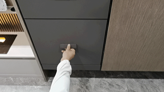 超薄镜柜+触控补光灯,满足女生化妆品收纳与化妆补光的需求,触控开关功能更加便捷,让化妆过程更加舒适享受;地柜采用U型抽屉设计,抽拉便捷也增加垂直收纳空间,且无论墙排或地排,都可定制U型抽屉避开不美观的下水管,充分利用盥洗盆下方储物