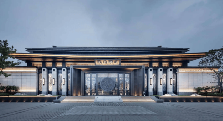 社区景观:采用 “空象简朴” 的匠造手法,打造约 46 米宽的恢弘府门,以 “书院礼制” 为核心理念,营造两轴三园九景的东方意境园林。