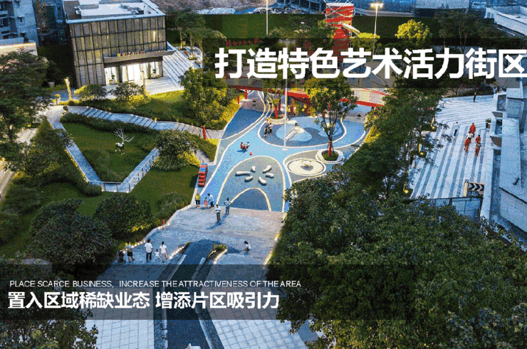 项目重视基地原有基因,通过因地制宜的设计手法,提供文化服务场所,打造特色艺术活力街区;填补周边商业空白,打造马陆镇高品质的商业中心。