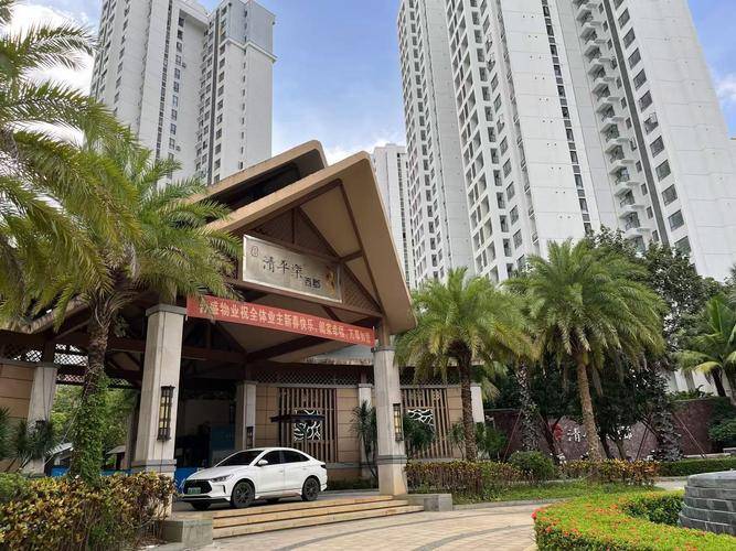园林景观:园林占地 4.45 公顷,有 6500 平米南丁山引流的自然雨水水域,构建了三层叠水园林,有憩园、泳池、亭台、飞瀑等 50 余处特色小品,种植了 280 余种热带植株,绿化覆盖率 58%。
