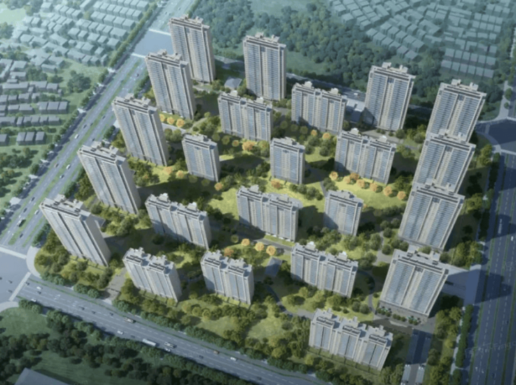 小区规划:项目占地面积 115,000㎡,建筑面积 249,000㎡,规划 23 栋楼,共 1891 户,容积率为 2.2,绿化率 30%,车位比 1.34:1。