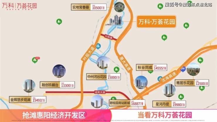 惠州万科·万荟花园(东部万科城)项目位于惠阳三和经纪技术开发区,开发商万科集团,中国房地产第一名,万科·万荟花园占地8.1万平方米,总建筑面积27.4万平方米,总户数1884户,在售户型75-115平米3-4房,装修交付,均价11000元,特惠8800元,热线电话:159-8959-7551