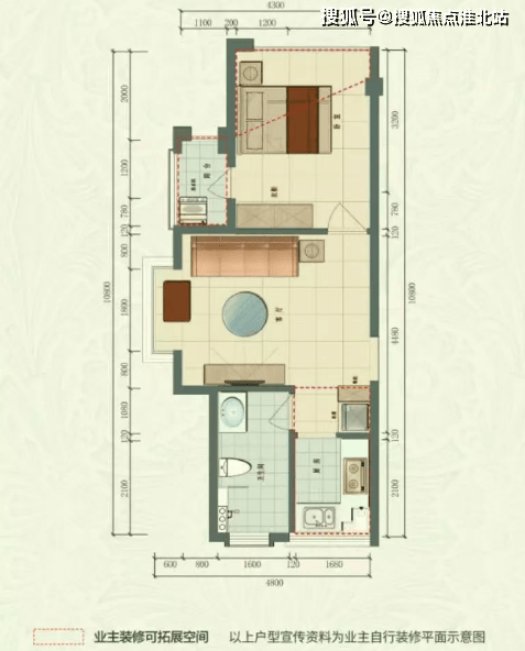 约 43.1㎡的一室一厅:户型方正,结构紧凑,空间利用率高,适合单身人士或小夫妻居住。