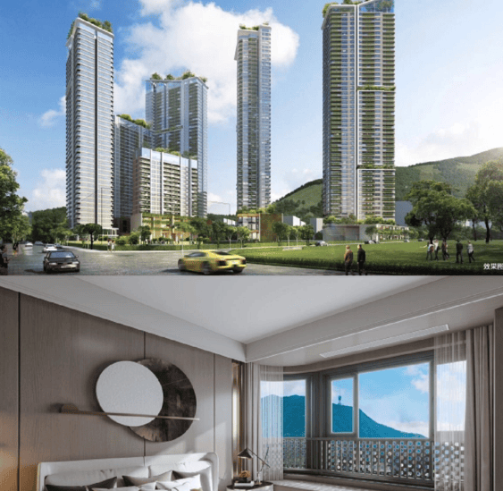 规模:占地约 2 万㎡,建面约 24 万㎡,5 栋(28-48 层)超高层,可售911 户
