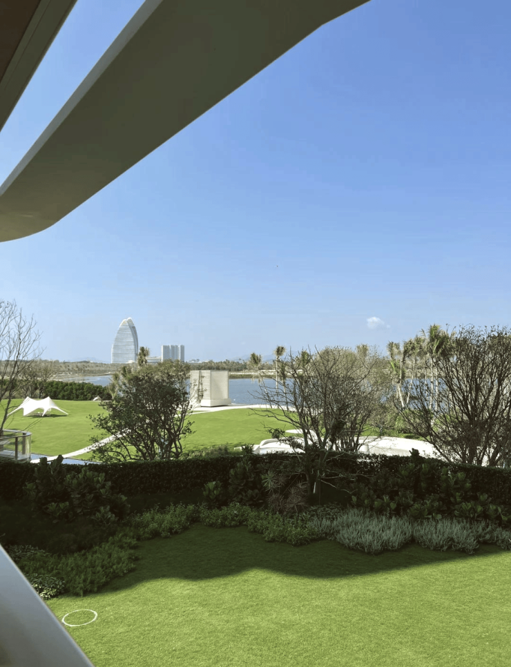 景观设计:秉持 “一轴两院五场景” 格局,雕琢林间、水苑、绿台、山囿、森海主题胜景。入口水景椰林错落,风雨连廊曲径通幽,草坪平台延展空间;中区庭院山囿主题,下沉庭院、堆坡山林与泳池辉映;北区庭院水景为核,雨林步道、廊架静卧,生态元素交融,充满热带风情。