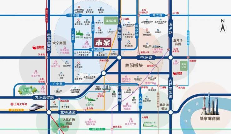 教育:项目周边教育资源丰富,幼儿园有车站西路幼儿园、虹口实验幼儿园、小不点幼儿园等,小学有广灵路小学、丽英小学(民办)、宏星小学(民办)、上外外国语小学(民办)等,项目对面就是上海市复兴高级中学、复兴实验中学,虹口区江湾中学(本项目不对口学区)