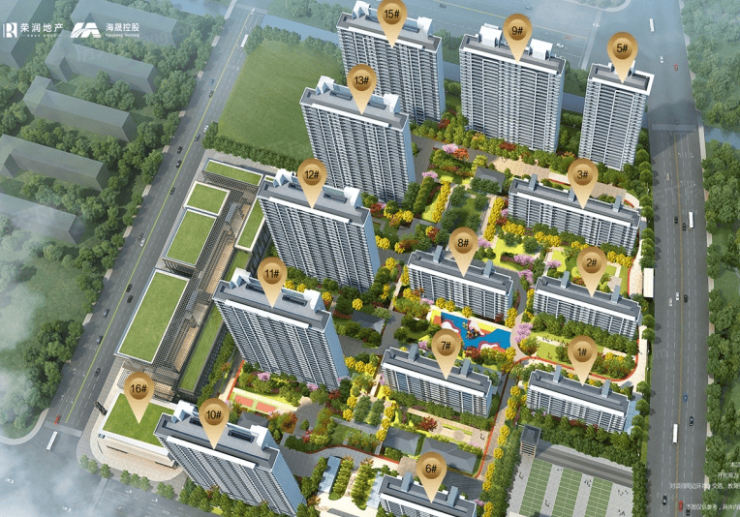 规模参数:项目占地面积 69,333㎡,建筑面积 250,000㎡,规划有 15 栋楼,包括 7 栋高层住宅、6 栋洋房以及 2.3 万方社区商业,规划户数 1209 户,容积率为 2.6,绿化率 36%。