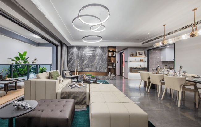 户型设计:主力户型为103-143㎡,涵盖高层、小高层和洋房产品。部分户型如123㎡三室两厅两卫,采用三开间朝南布局,配备约6.8米宽奢阳台,采光与观景效果俱佳。
