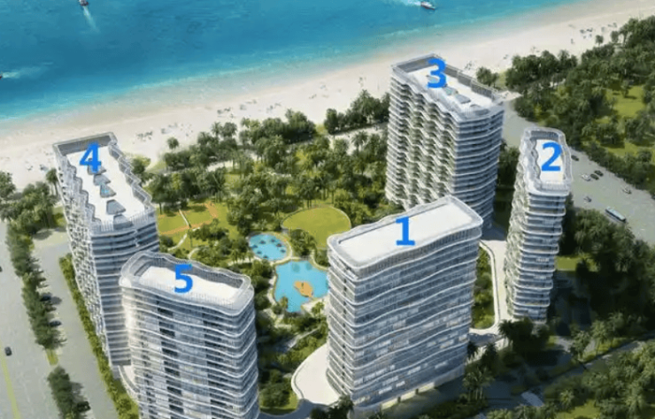 梯户比:2 栋 2 梯 5 户、4 栋 3 梯 12 户;22–23 层;U 型楼栋布局,保证户户海景视野