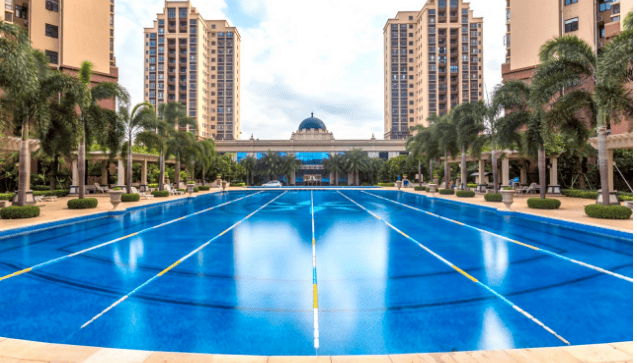 内部配套:有商业街、小区人工湖、独立的业主休闲会所、国际标准泳池、小区幼儿园、24 个温泉泡池、50 亩私家运动公园。