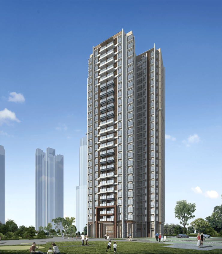 核心指标:占地约 5 万㎡,总建面约 15 万㎡;9 栋 14–33 层中高层点式布局;总户数1298 户;容积率 3.0,绿化率约 40%(新加坡式五感园林,含 500㎡泳池、环形跑道、儿童乐园);车位 1888 个,配比1:1.45;梯户比 2 梯 6 户为主;精装交付,2022–2024 年分批交付,全线现房