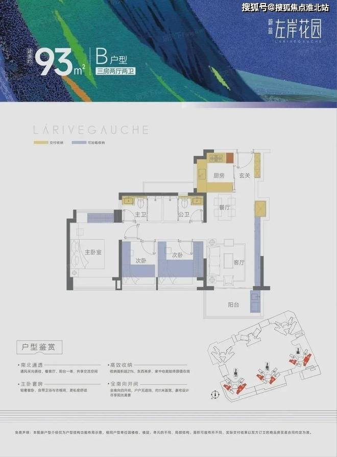 【93㎡精装三房两卫】南北通透 通风采光俱佳,餐客厅、阳台一体,共享交流空间·主卧套房 轻奢套卧,自带卫浴与衣帽间,更私密舒适·高效收纳 收纳面积超21%,东西再多,家中也能始终颜值在线·全南向开间 全南向四开间,户户无遮挡,约11米面宽,豪宅设计尽享阳光美景