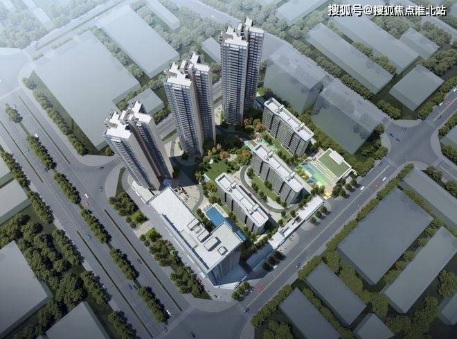 建筑布局:由 3 栋高层住宅、1 栋公寓及部分商墅组构而成,采用板塔结合的建筑类别,整体布局合理,楼间距适中,保证了各楼栋的采光和通风。