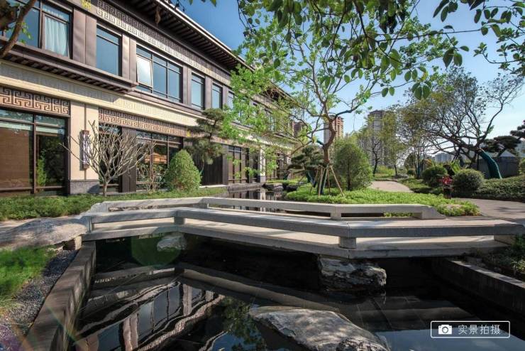园林景观:以 “国韵山水园林” 为主题,呈现魏晋风骨、两宋文蕴的千年古典美学。一进山水院以叠石奇景、精巧花木为主,营造如居山中的归家体验;二进镜水院以水景、曲桥、角亭为主,展现中式生活特色园林空间。项目园林还以环绕式连廊、点景亭台、曲桥竹径,将山水园境串联,一步一景。