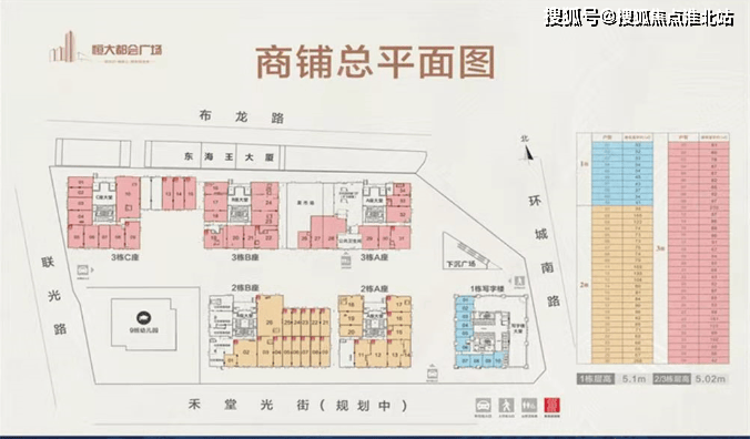 恒大都会广场:超黄金开间·70年产权·67席临街旺铺,在售建面约32-267㎡鎏金临街旺铺,单价7-9万元/平,共67套全开放式、临街一层铺,位于1栋、2栋、3栋的首层。