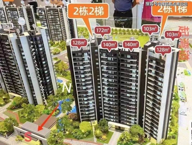 2栋1梯:103/128/140m户型;2栋2梯为两梯三户设计,有约140/172m户型,共计127套房源。(精装)