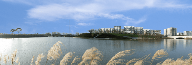 项目位于小镇核心发展主轴之上,绿色围合环抱,无建筑遮挡,视野极佳,水系环绕。