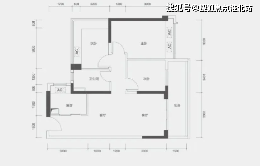 85㎡ 3 房 2 厅 1 卫:有 A、B 两种户型,均为竖厅格局,客厅开间 3.3 米,LDKB 一体化,三开间朝南,客厅连接次卧出 5.7 米长的大阳台,L 型厨房,得房率约 79%(不含赠送),西南或东南朝向。其中 B 户型为创新式三分离卫生间。