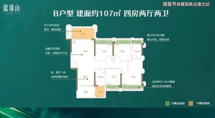户户南北朝向,瞰山揽园约 119 ㎡王牌户型,层高 3.2 米