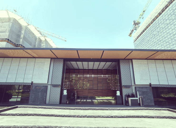 建筑与园林设计:以 “现代东方・静谧禅意” 为核心理念,融合良渚玉琮形制与当代设计,通过飞檐翘角、凝练线条等设计元素,展现当代东方建筑的独特魅力。小区内部园林景观以江南园林为蓝本,打造 “一园三堂” 的居住意境,并设有户外泳池、滨河营地、下沉式水榭等。