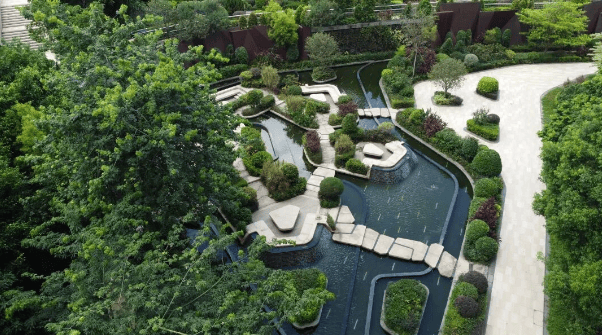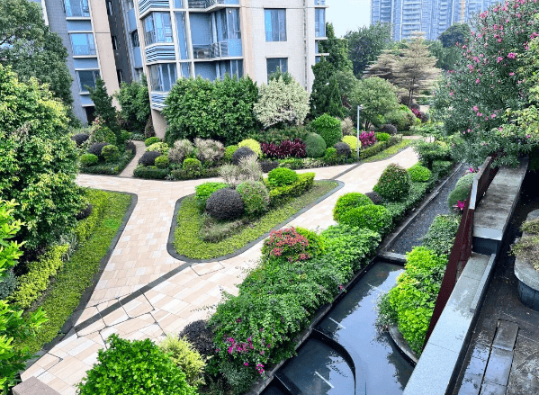 园林景观:小区内打造了英式园林,有高低错落的乔木、水景、花草,还设置了全龄互动空间,满足不同年龄段业主的休闲需求。