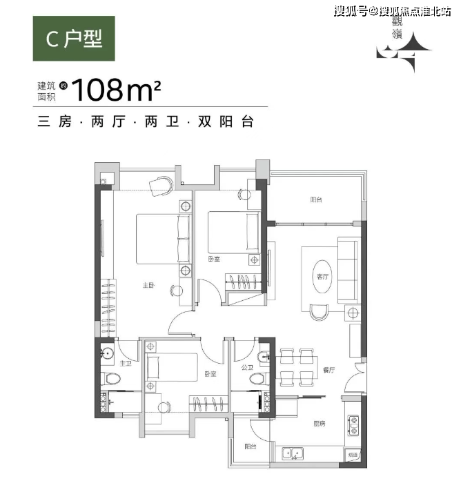 120㎡四房:双阳台+270°环幕视野,主卧套房配备浴缸,厨房可容纳岛台,满足三代同堂需求