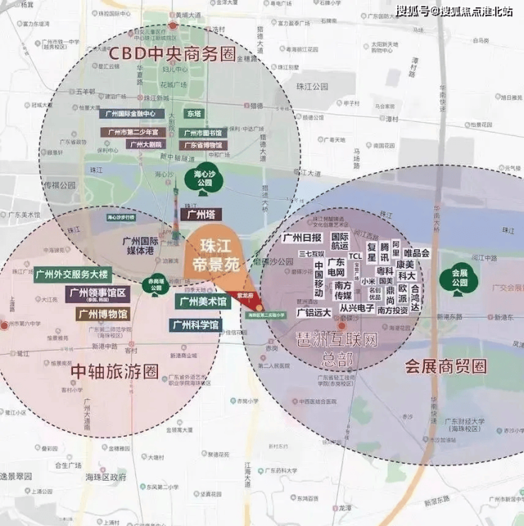 广州塔板块已成为最核心最被看好的区域,以广州塔为核心的新城市中轴线方圆一公里范围内,都是广州中心城区市政规划的重点区域,周边环绕三馆一场(美术馆、博物馆、科学馆、岭南广场、海心桥)、琶洲千亿级互联网CBD区(腾讯、阿里、复星、国美、小米等入驻)、珠江啤酒博物馆、广州报业文化广场、领事馆区、湿地公园等,形成独有的高端人文圈层。该板块资源稀缺,买少见少,地价一路飙升。