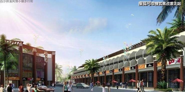 以东南亚热带骑楼风格为设计主题的连排别墅式建筑群落,点辍着黎族图腾, 烘托民族文化气息,加景。