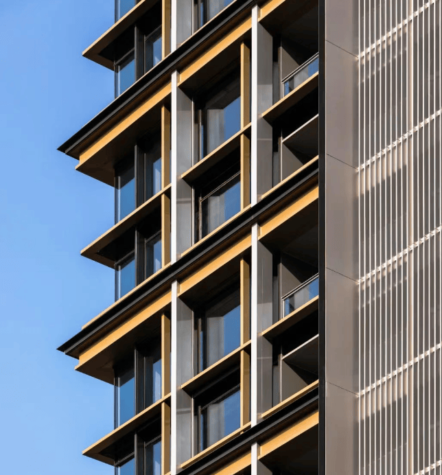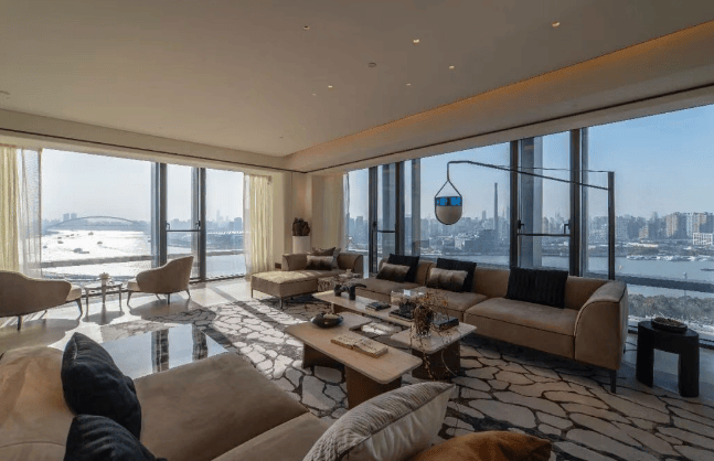 由SCDA、CCD等国际知名设计团队操刀,采用公建化立面设计,融合现代主义与解构主义风格。建筑通过横竖线条交错,呼应世博建筑风格,双层挑空阳台设计模糊室内外界限,最大化引入江景视野。