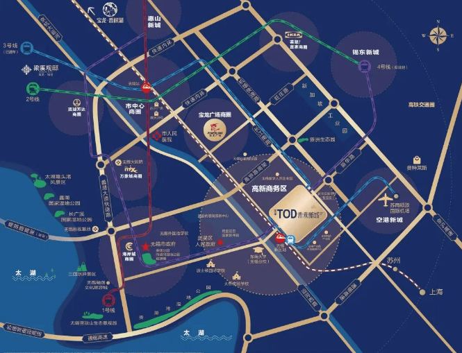 交通:临近地铁 3 号线无锡新区站和规划中的地铁 4 号线二期无锡新区站,周边还有 20 余条公交线路。此外,项目靠近机场路、新华路等城市主干道,可快速通达全城。