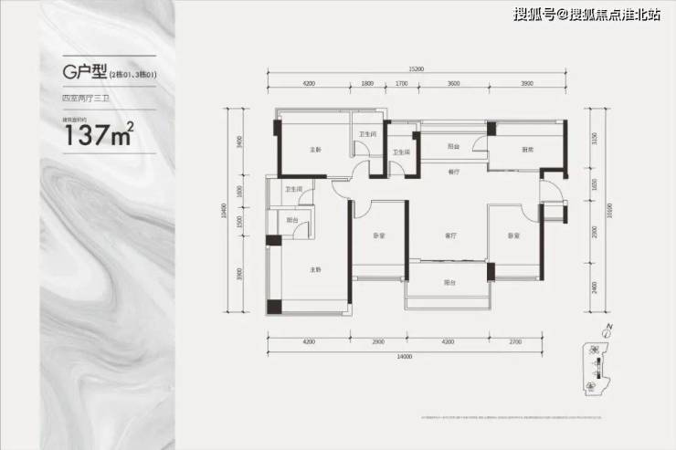 建面137㎡四房三卫