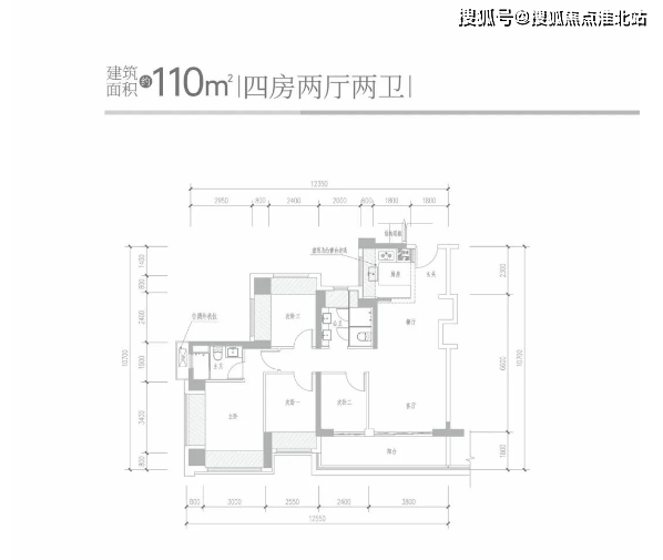 120-139㎡四房两厅两卫:横厅南北通透格局,客餐厅 6.4-6.35 米宽,进门独立玄关,U 型厨房,公卫三段式分离设计,带大阳台进深 1.7 米,长 6.2-8.8 米,主朝西北或东北向,可看科学公园景观。以 119-120㎡户型为例,4 个卧室分别做到了 3.3 米、2.9 米、2.7 米、2.5 米的宽度。