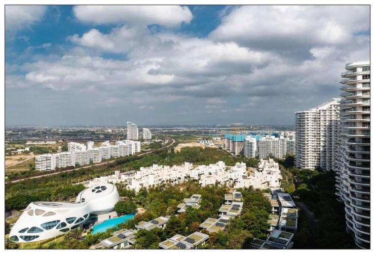 规模参数:海上公馆组团容积率1.38,绿化率45.3%,纯叠拼低密社区,人车分流;