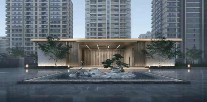 建筑风格:独创香槟金铝板与玻璃幕墙,对称美学融合现代锋芒,外立面如鎏金画卷,极具现代美感。