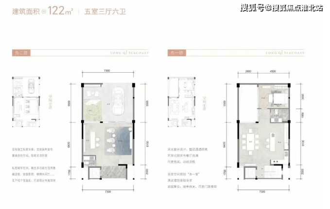 瞰海别墅:建面约 122㎡,为五房三厅四卫滨海别院,户型设计注重空间的开阔性和海景的最大化利用,拥有多个露台和花园,可全方位欣赏海景和园林景观。
