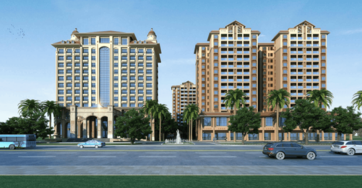 建筑信息:项目总占地约 28 亩,总建面逾 6 万㎡,由 4 栋 15 层高层住宅及 1 栋自持酒店组成。