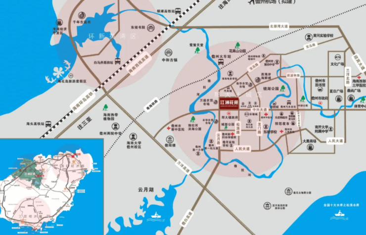 交通:2 分钟可上万洋高速,3 分钟可达儋州汽车总站,20 分钟达白马井高铁站及银滩高铁站,20 分钟达儋州机场(规划中),20 分钟直通环岛西线高速。